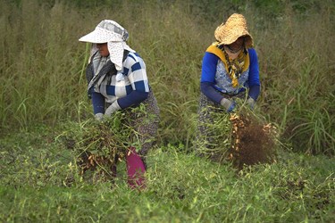 کشت بادام زمینی در آستانه اشرفیه گیلان، همه ساله در اوایل اردیبهشت ماه آغاز و در اواخر شهریور ماه برداشت می شود. آستانه اشرفیه به دلیل داشتن خاک حاصلخیز آبرفتی رودخانه سپیدرود مهمترین قطب تولید بادام زمینی کشور است.در این شهرستان بطور میانگین در هر هکتار سطح زیر کشت بادام زمینی حدود شش و نیم تن پیله تر بادام زمینی بدست می اید که از این میزان نیز حدود ۴ تن دانه بادام زمینی حاصل می شود.