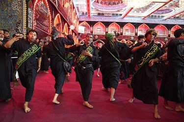 همزمان با اربعین حسینی (ع)، دسته های سینه زنی و زنجیرزنی وارد حرم امام حسین (ع) شده و به عزاداری می پردازند.