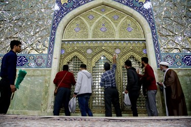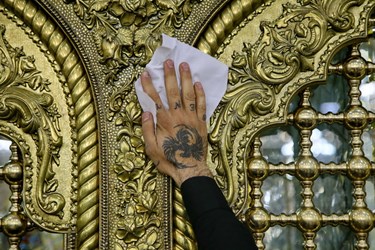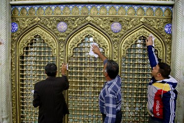غبارروبی ضریح حرم حضرت معصومه(س) توسط زندانیان